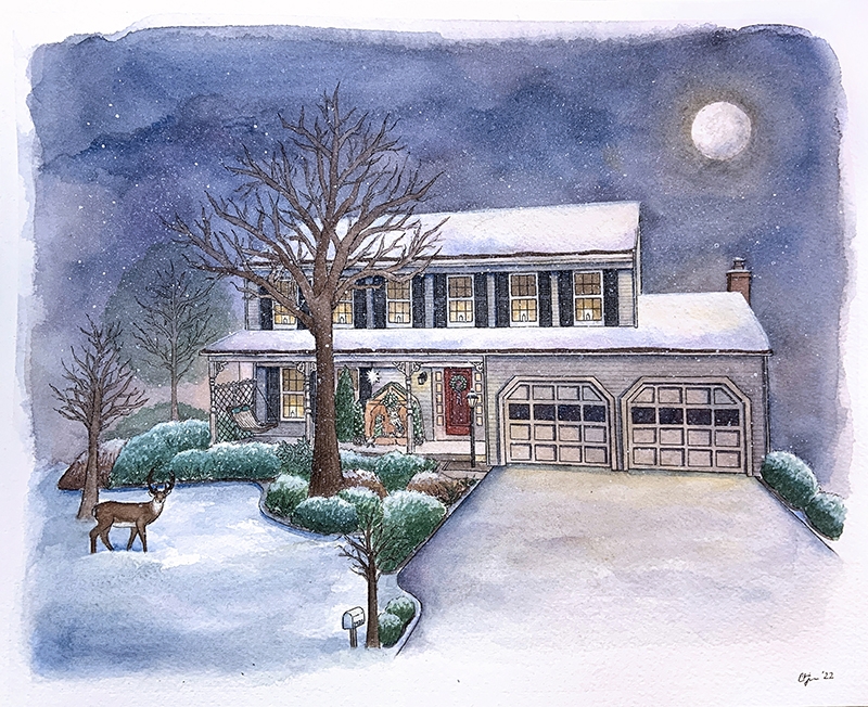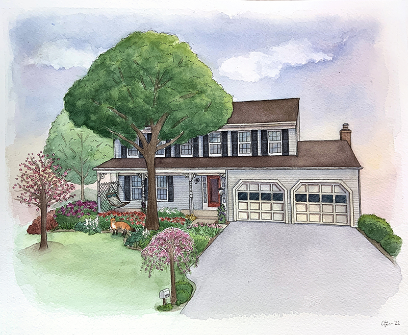 Please send me images of the house. Having clear, high quality photos during the daytime and from a few different angles helps a lot. If you have any special requests for the painting (e.g. time of day, season, sentimental details, etc.), feel free to let me know as I hope to create a painting that you’ll love and treasure!